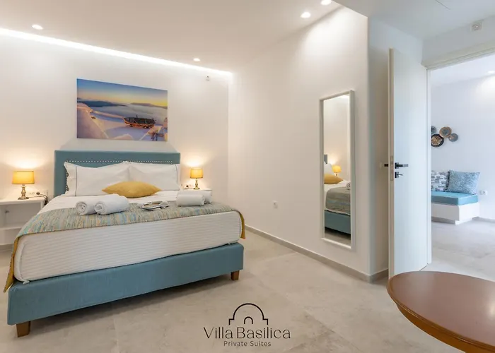 Mit einer Klimaanlage ausgestattet, bietet die Villa Basilica Kallisto einen Balkon und eine Terrasse mit Blick auf den Garten. Diese Unterkunft verfügt über eine getrennte Toilette und eine Dusche für Ihren Komfort. Darüber hinaus gibt es im Badezimmer einen Haartrockner, Badelaken und Hausschuhe.